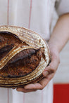Zuurdesembrood van 1 kg, gemaakt met T80 tarwebloem, boekweitmeel en amarantmeel. We voegen er ons huisgeroosterd zadenmengsel aan toe: bruine lijnzaad, gierst, zonnebloem, pompoen, boekweit en maanzaad.