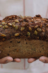 Deens brood met een donkere, compacte kruim, rijk aan vezels dankzij de roggemeel. Verrijkt met onze huisgemaakte zadenmix — bruine lijnzaad, gierst, zonnebloem, pompoen, boekweit en maanzaad — voor een rustieke, voedzame smaak, ideaal van ontbijt tot diner.